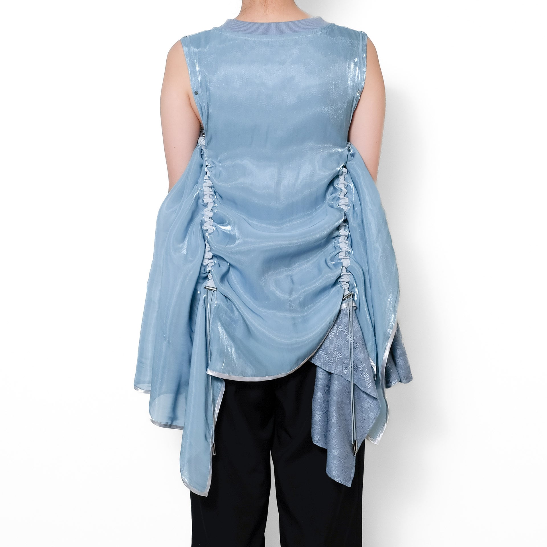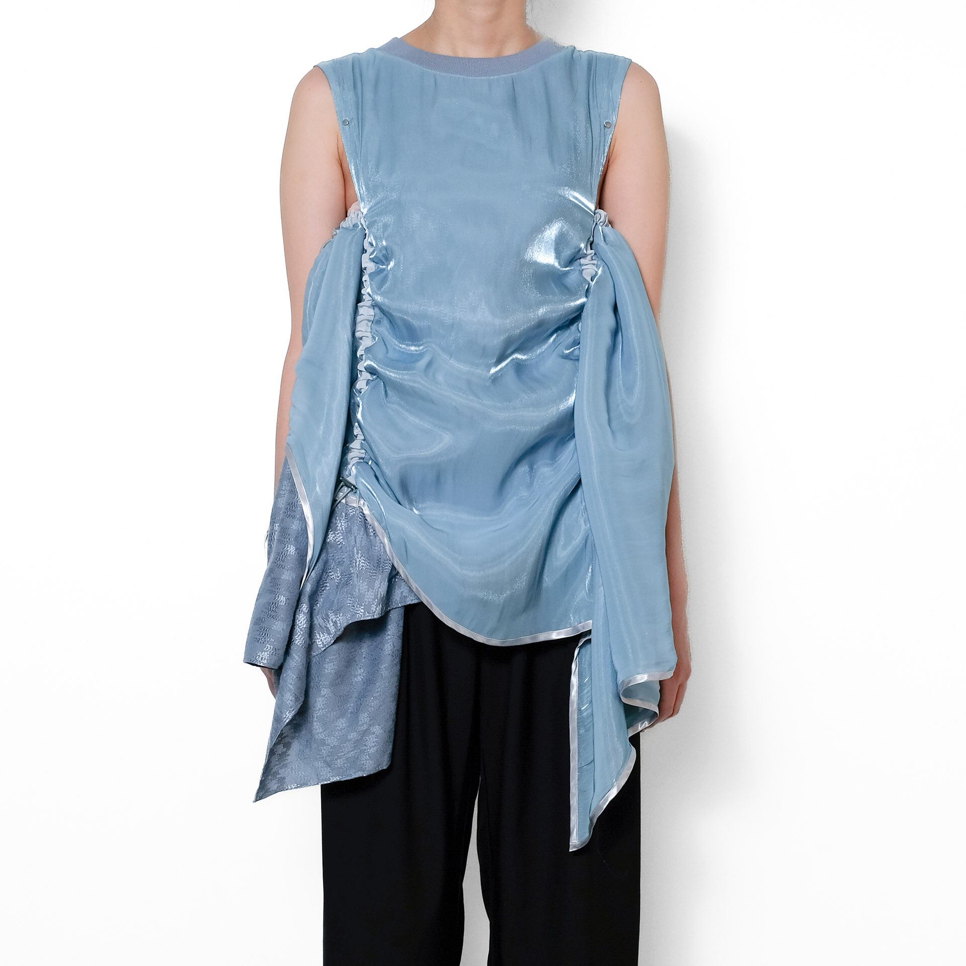 透け感のある素材の特性を生かし、アシンメトリーデザインに仕立てた一枚です。