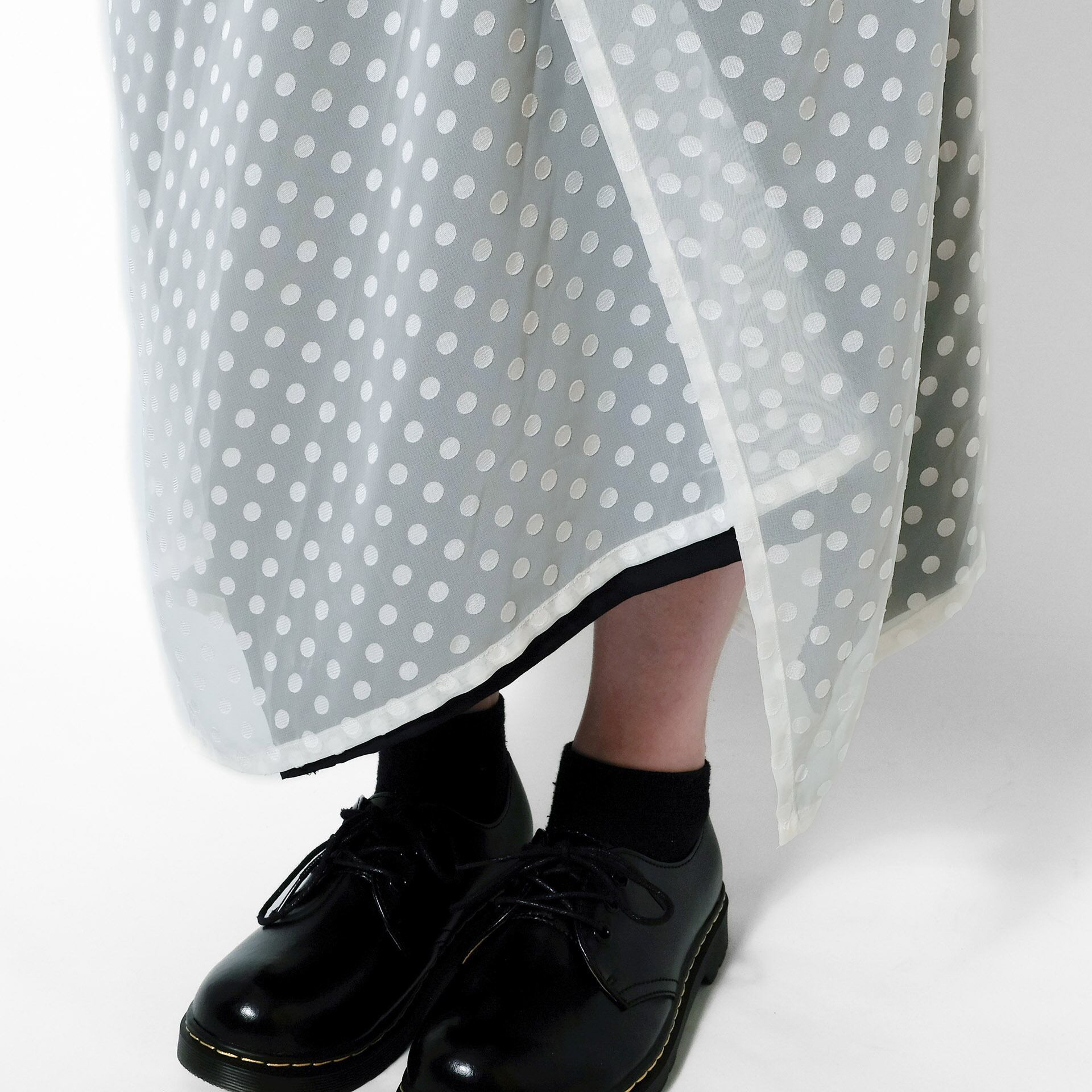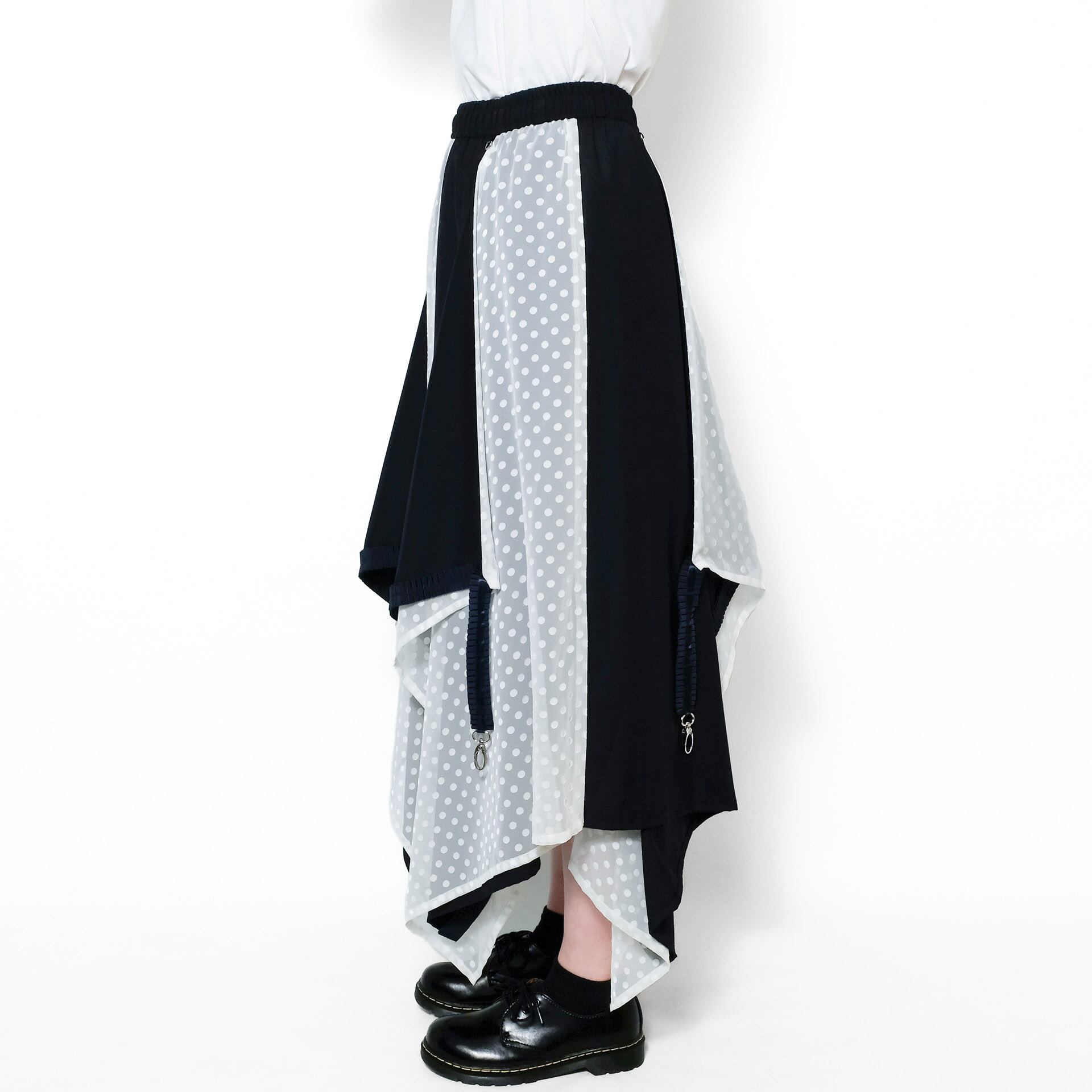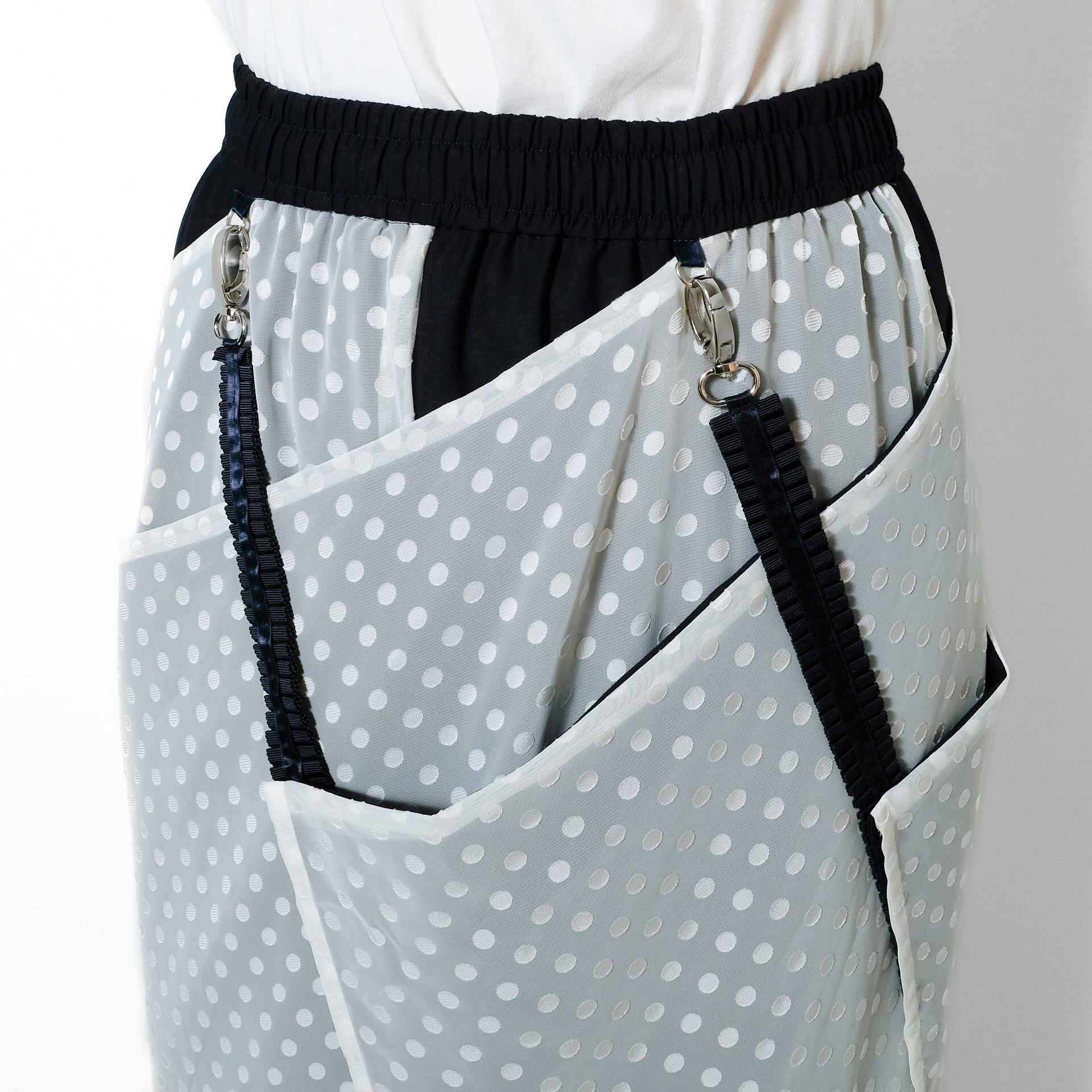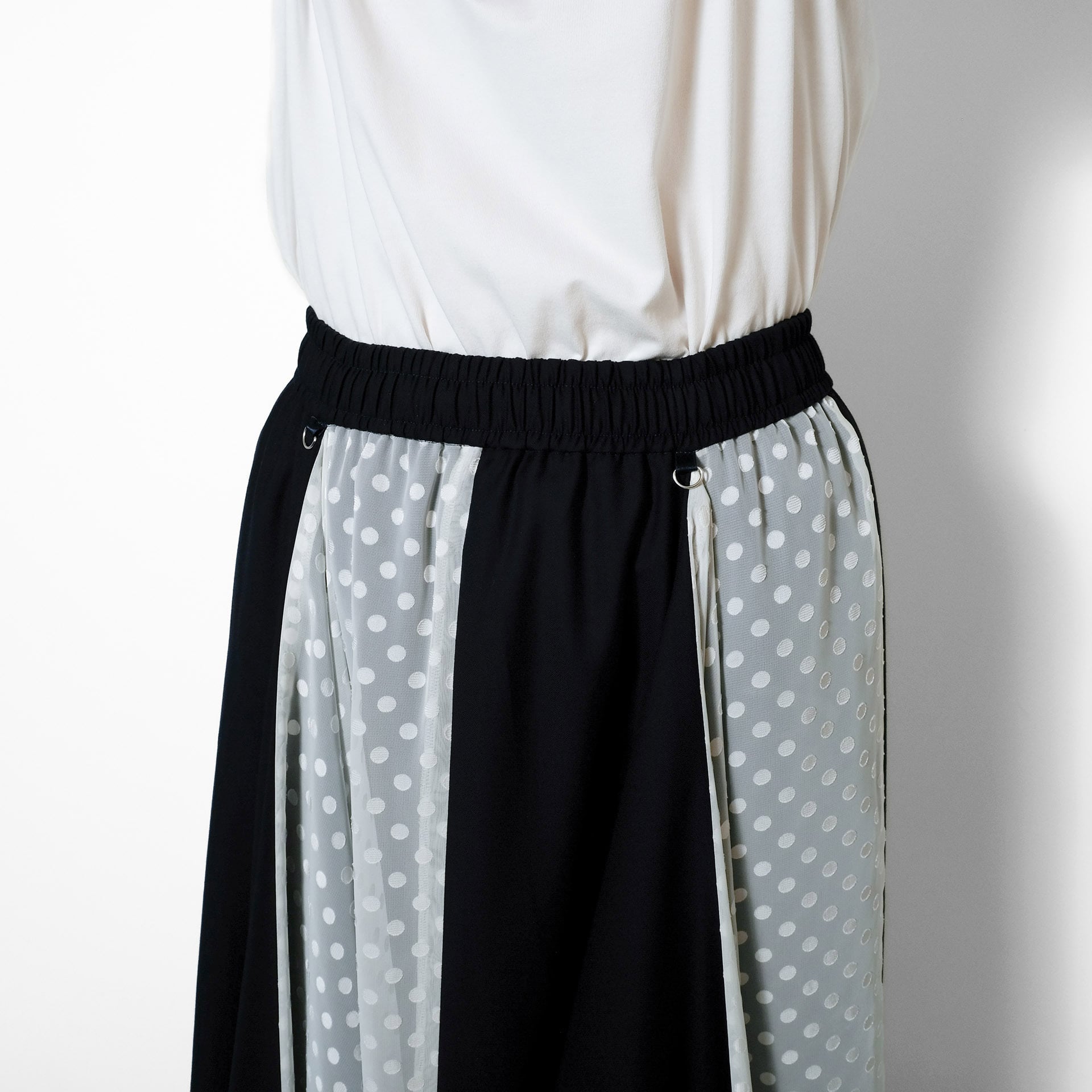 上質なクリアツイルと華やかなドット柄のサテンオパールを巧みに組み合わせ、魅力的なドレープを演出したスカートです。