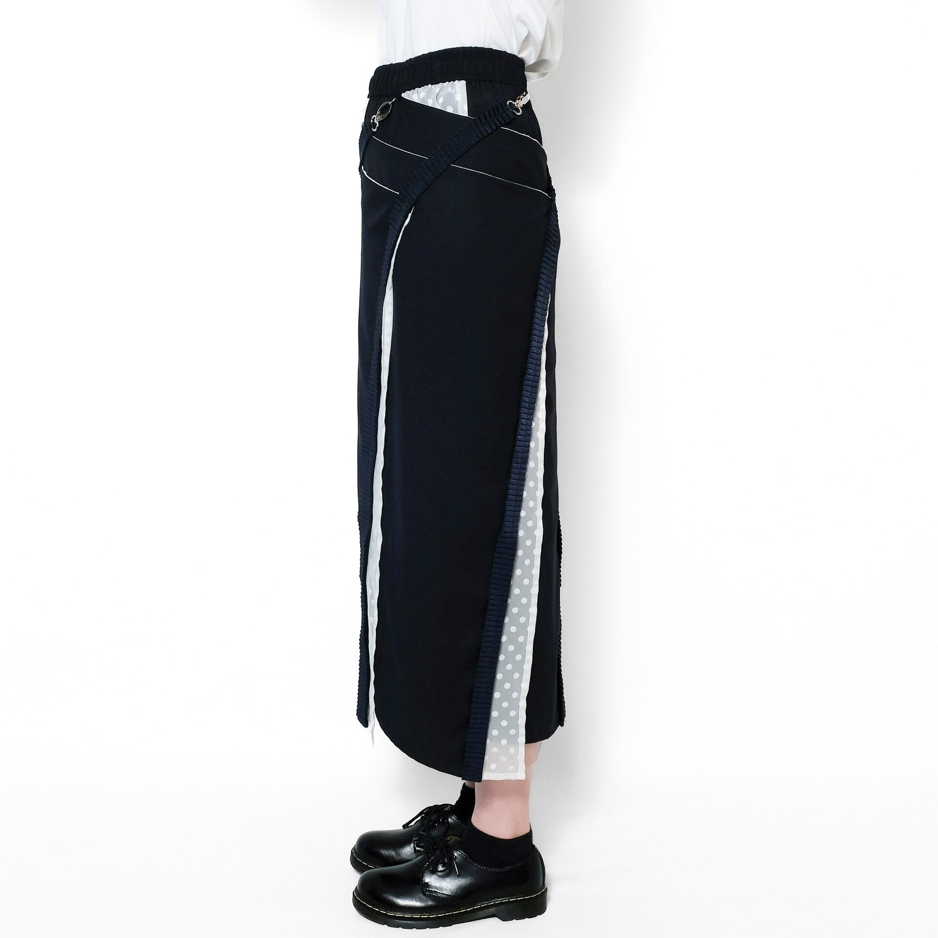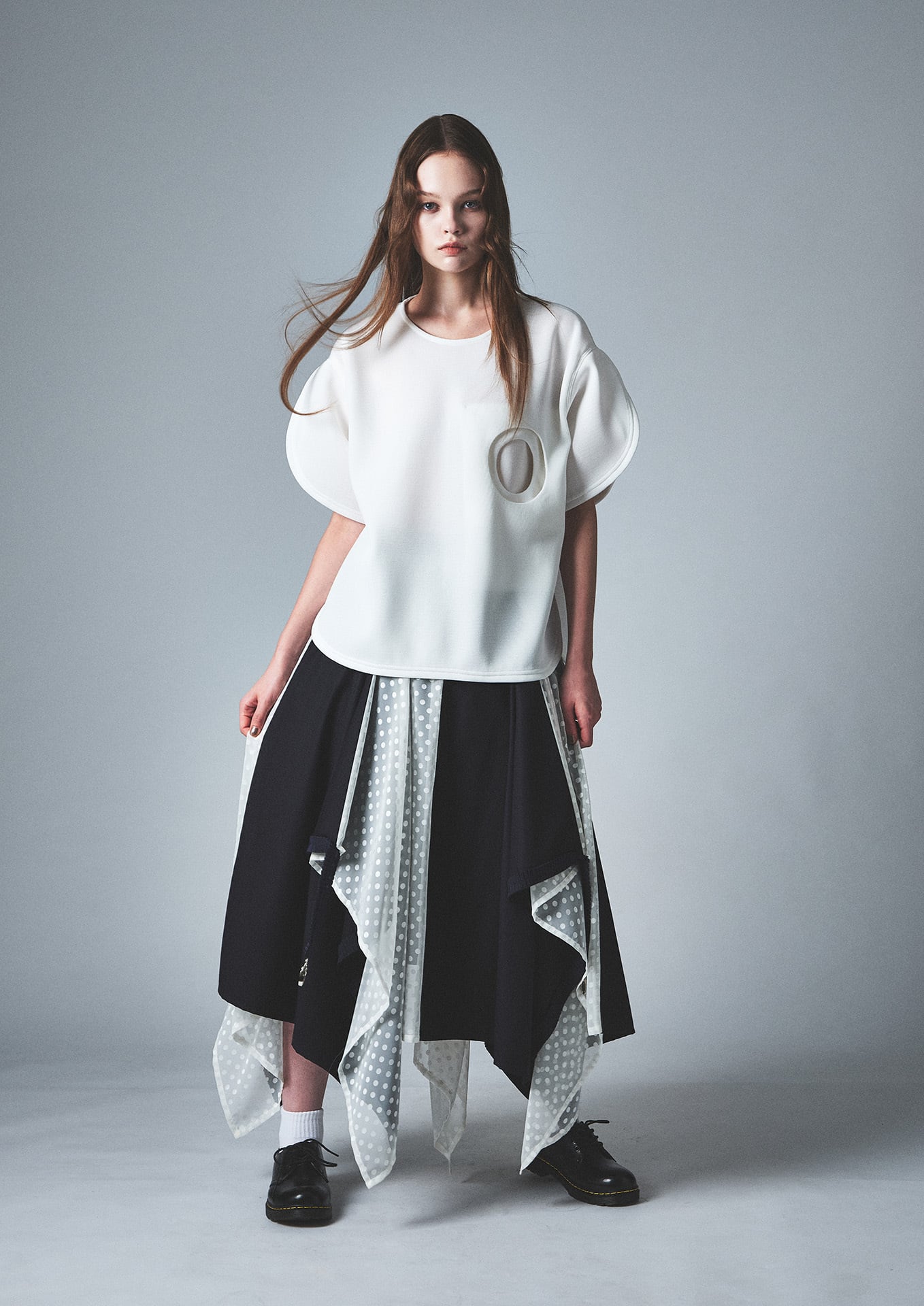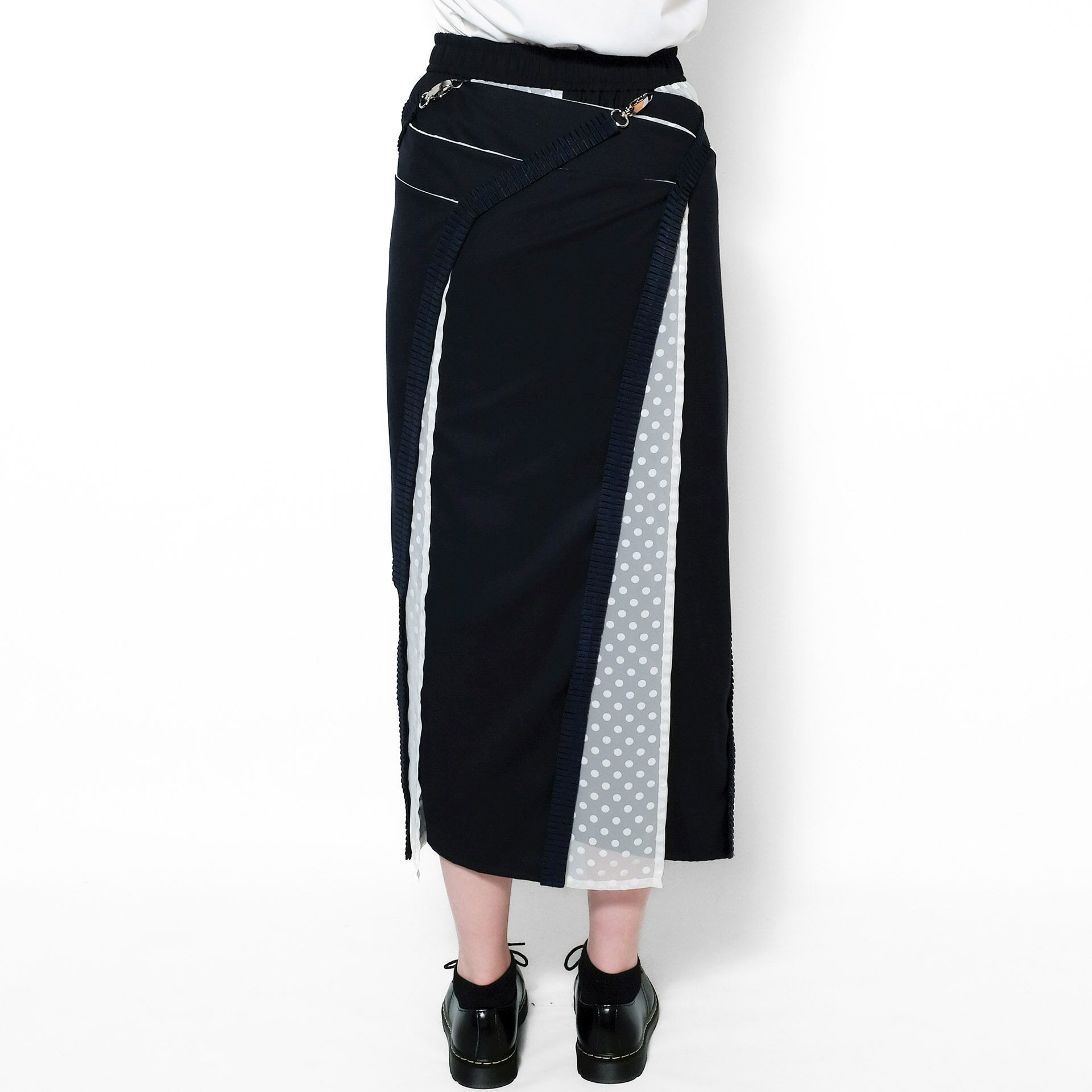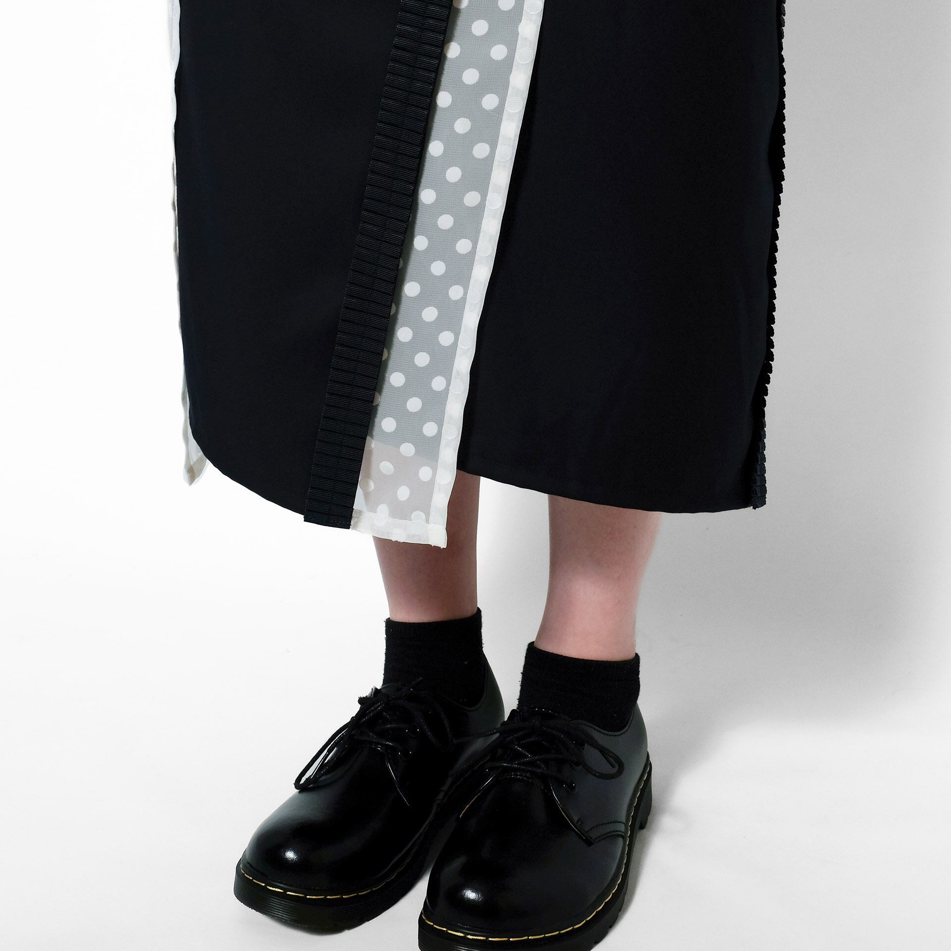上質なクリアツイルと華やかなドット柄のサテンオパールを巧みに組み合わせ、魅力的なドレープを演出したスカートです。