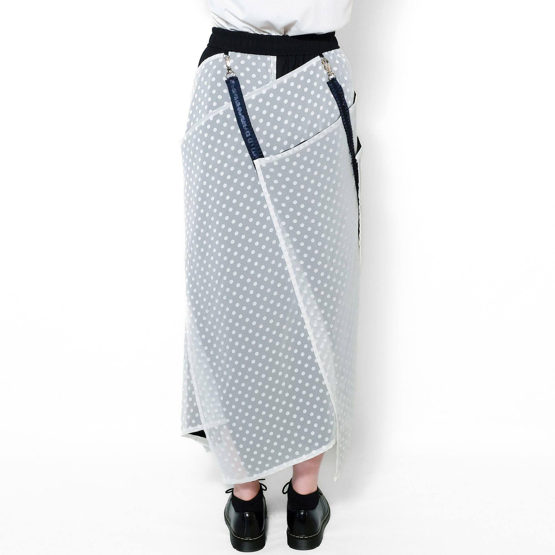無地のラップスカートとしても、ドット柄のラップスカートとしても活躍する3WAY仕様。