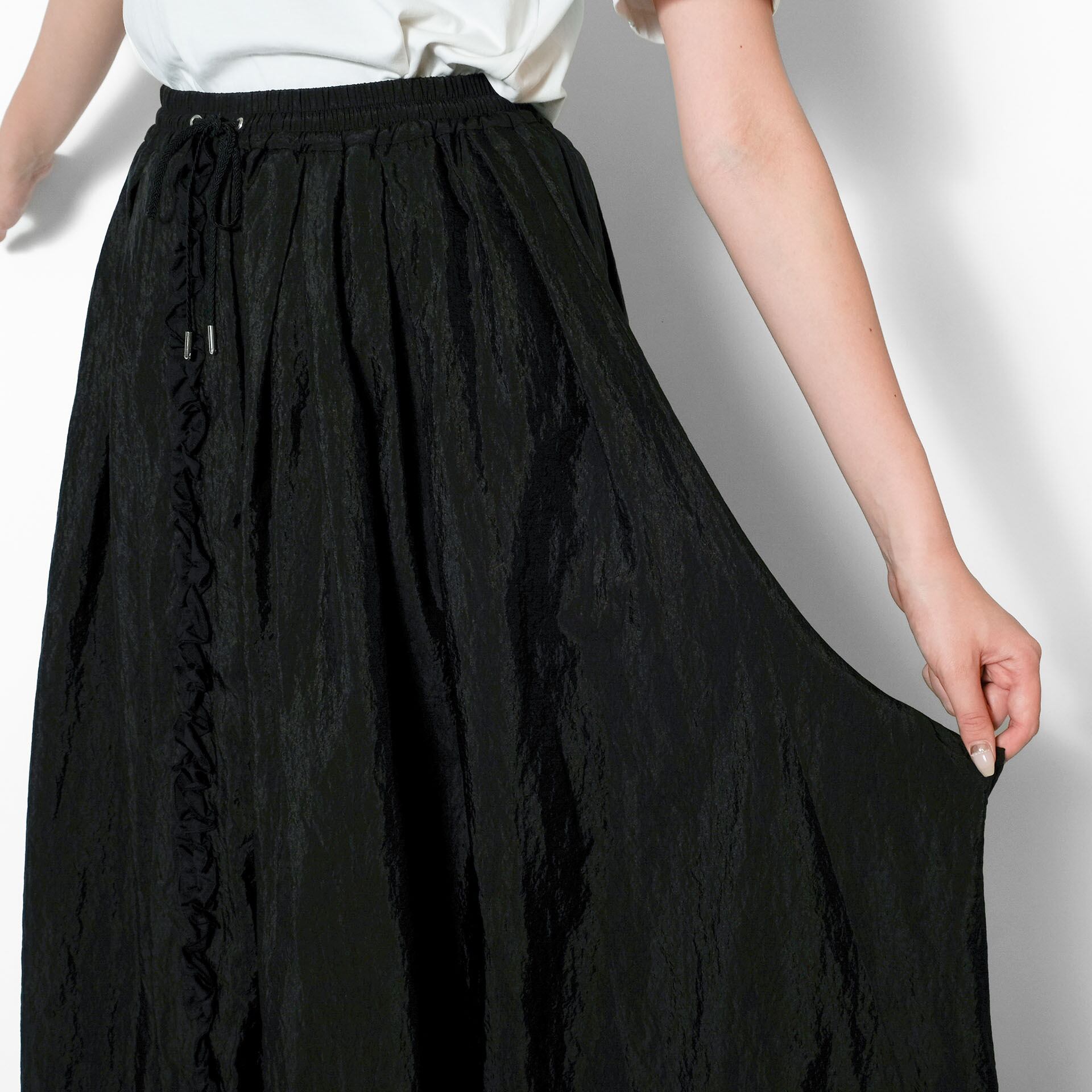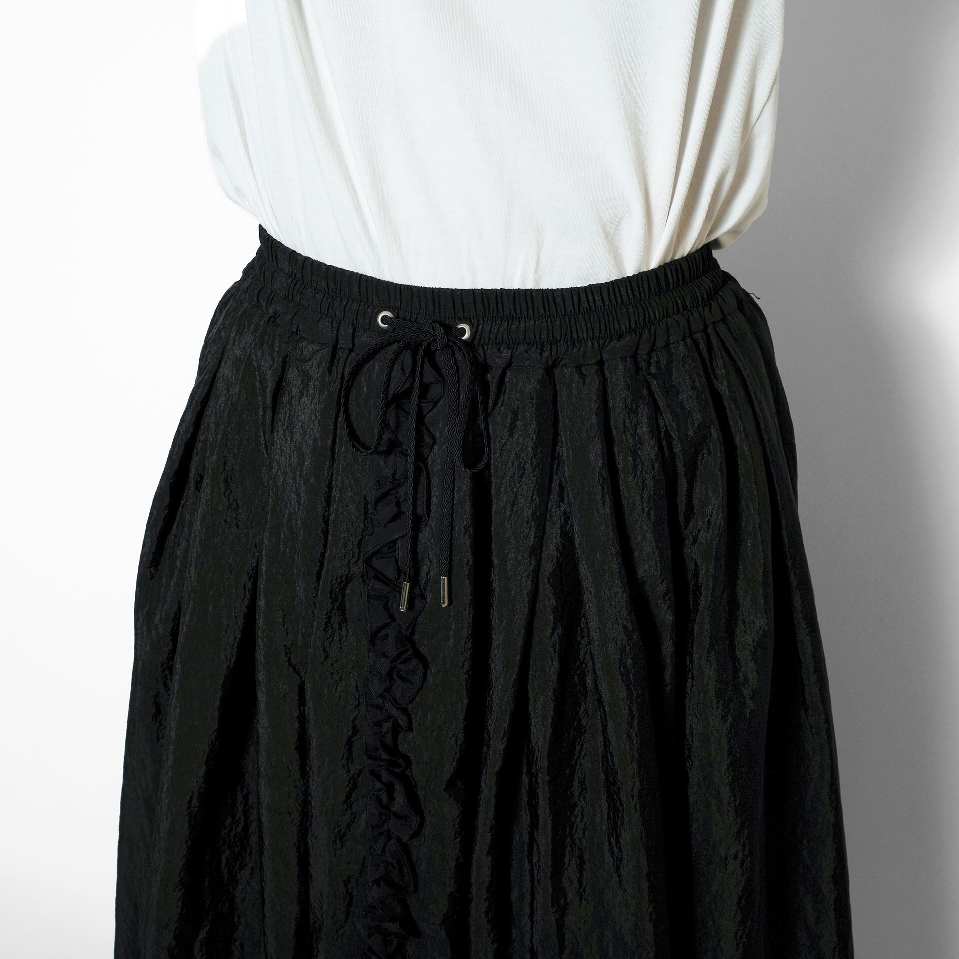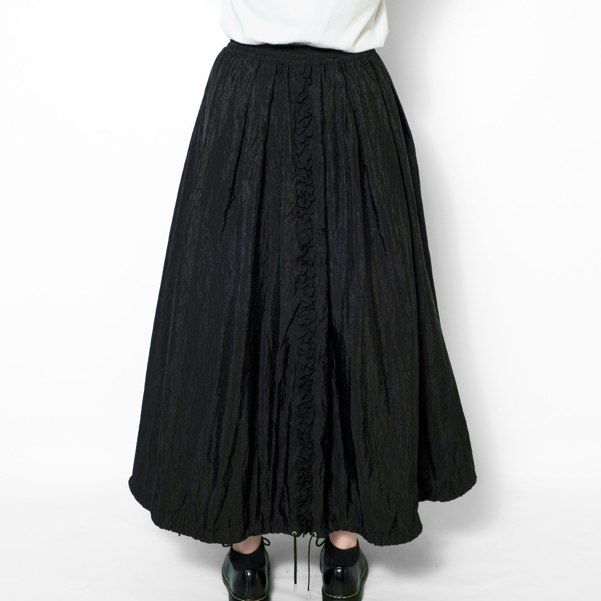 軽やかでヴィンテージライクな質感を持つナイロン素材で仕立てた、ギャザーフレアスカート。