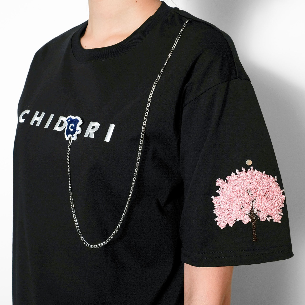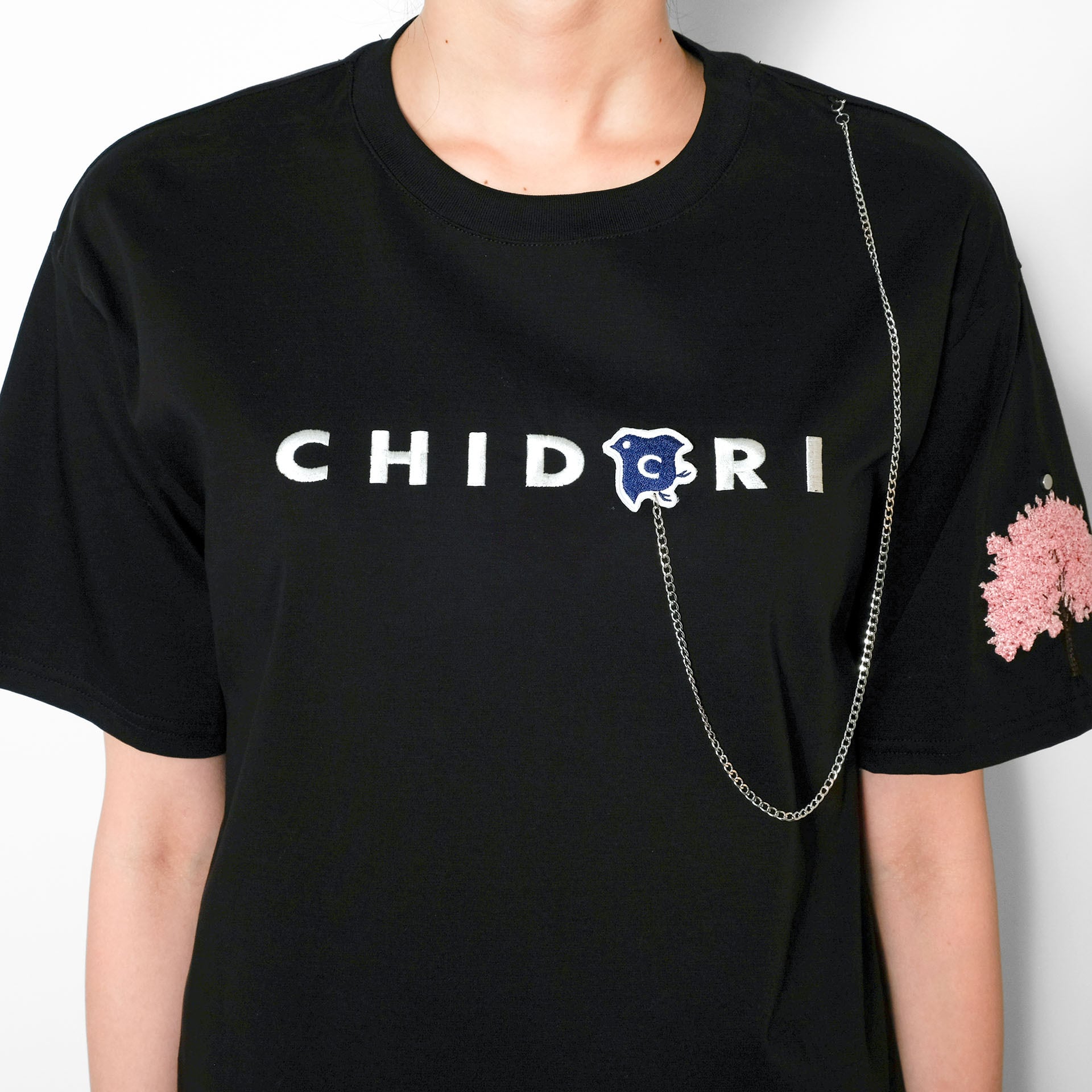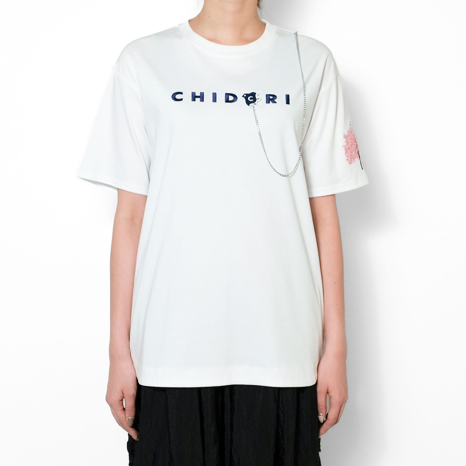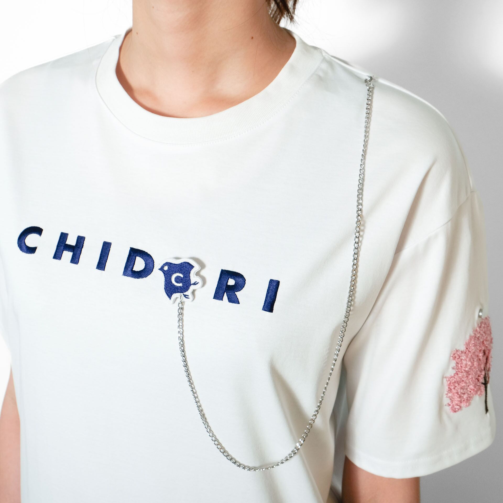 チェーンとワッペンは取り外し可能な仕様で、洗濯時も安心。構造美と物語性を兼ね備えた、CHIDORIらしい詩的な一枚です。