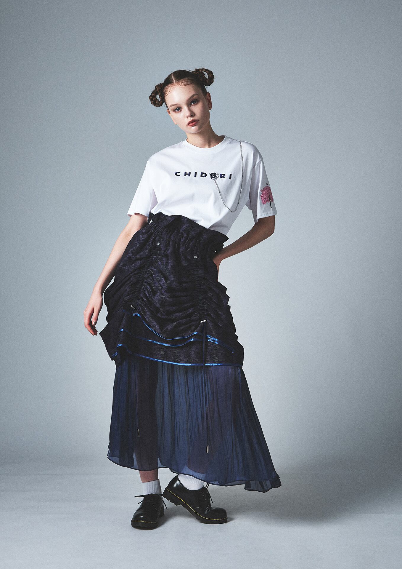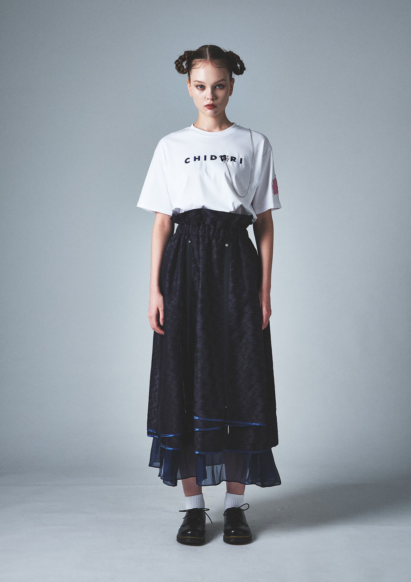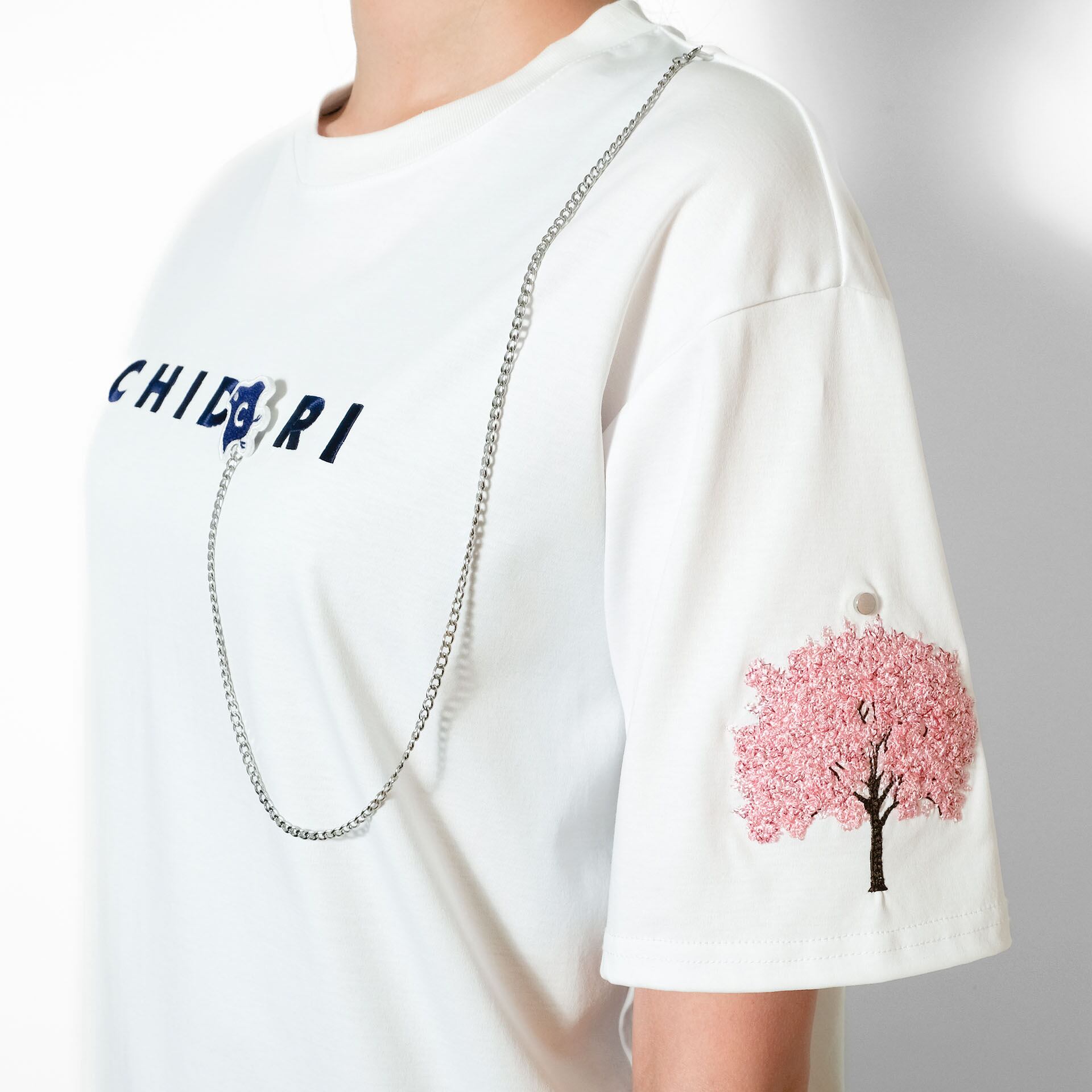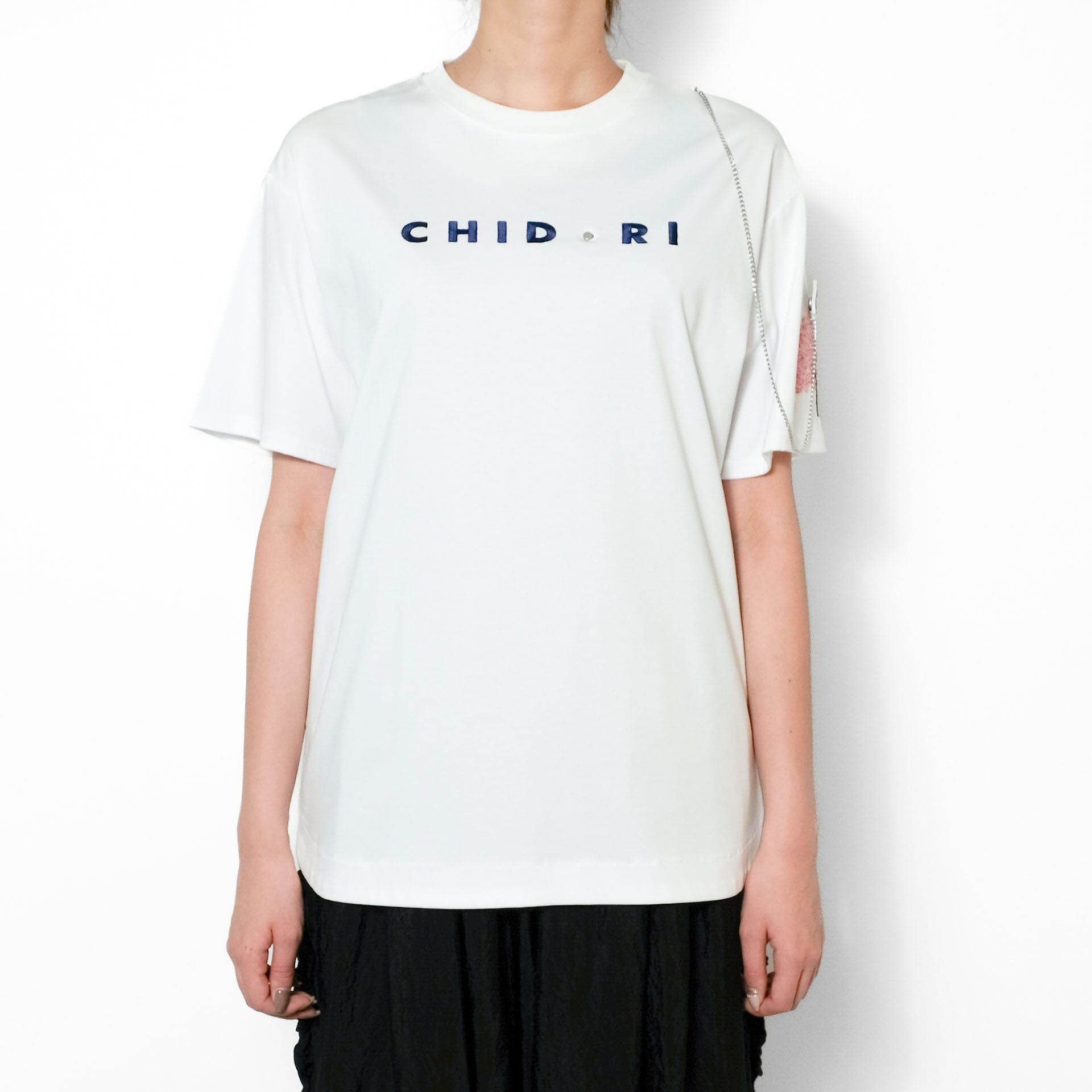チェーンとワッペンは取り外し可能な仕様で、洗濯時も安心。構造美と物語性を兼ね備えた、CHIDORIらしい詩的な一枚です。