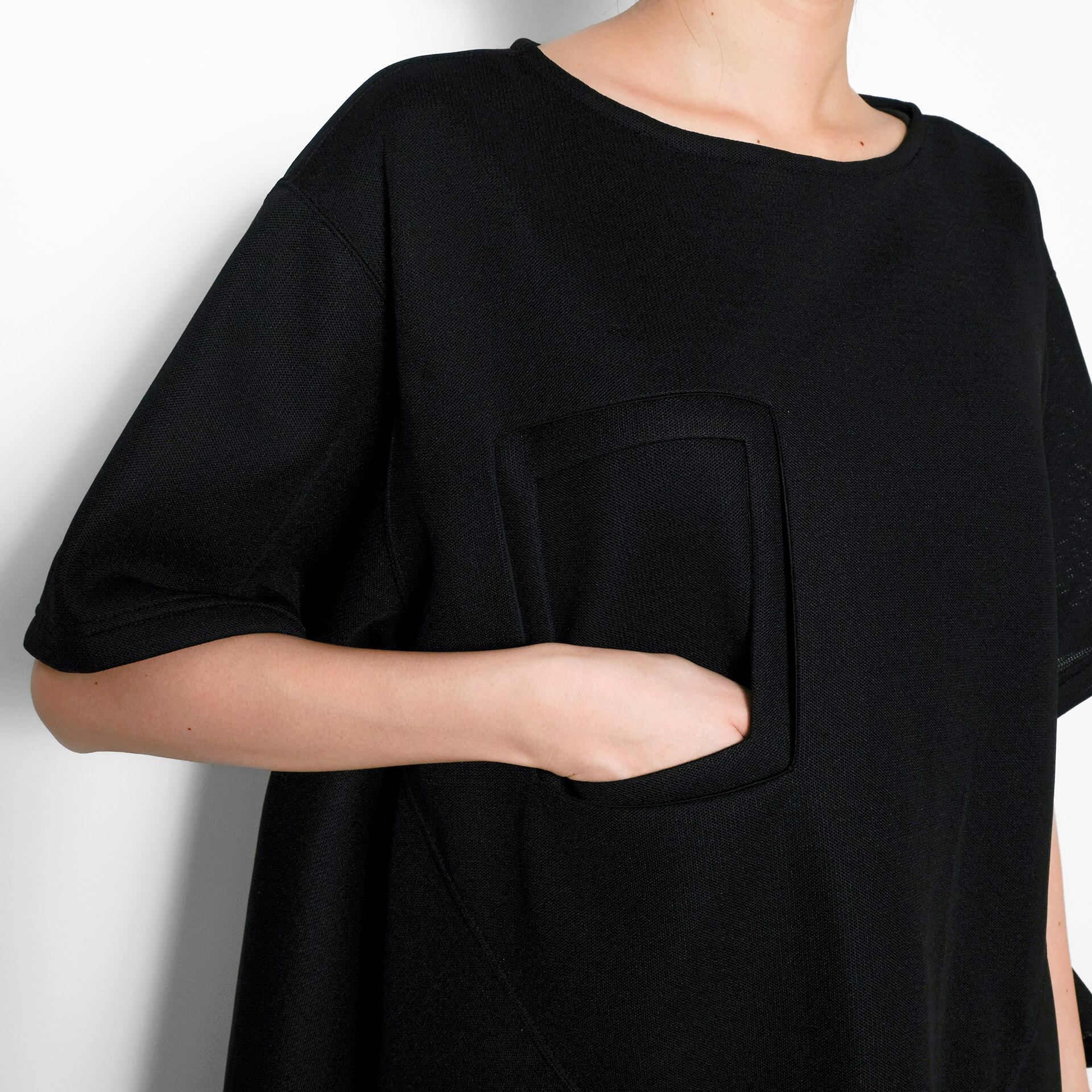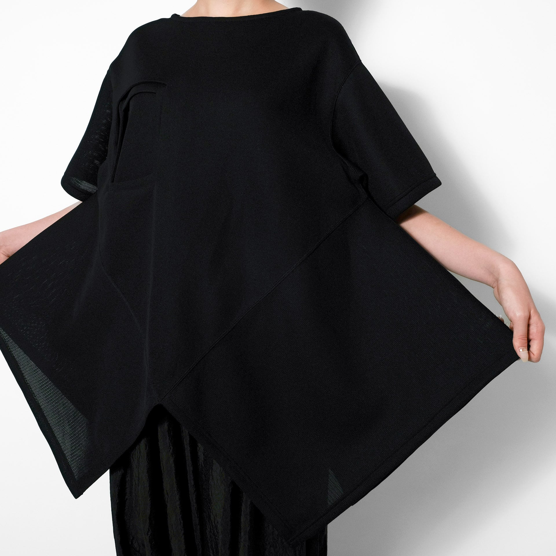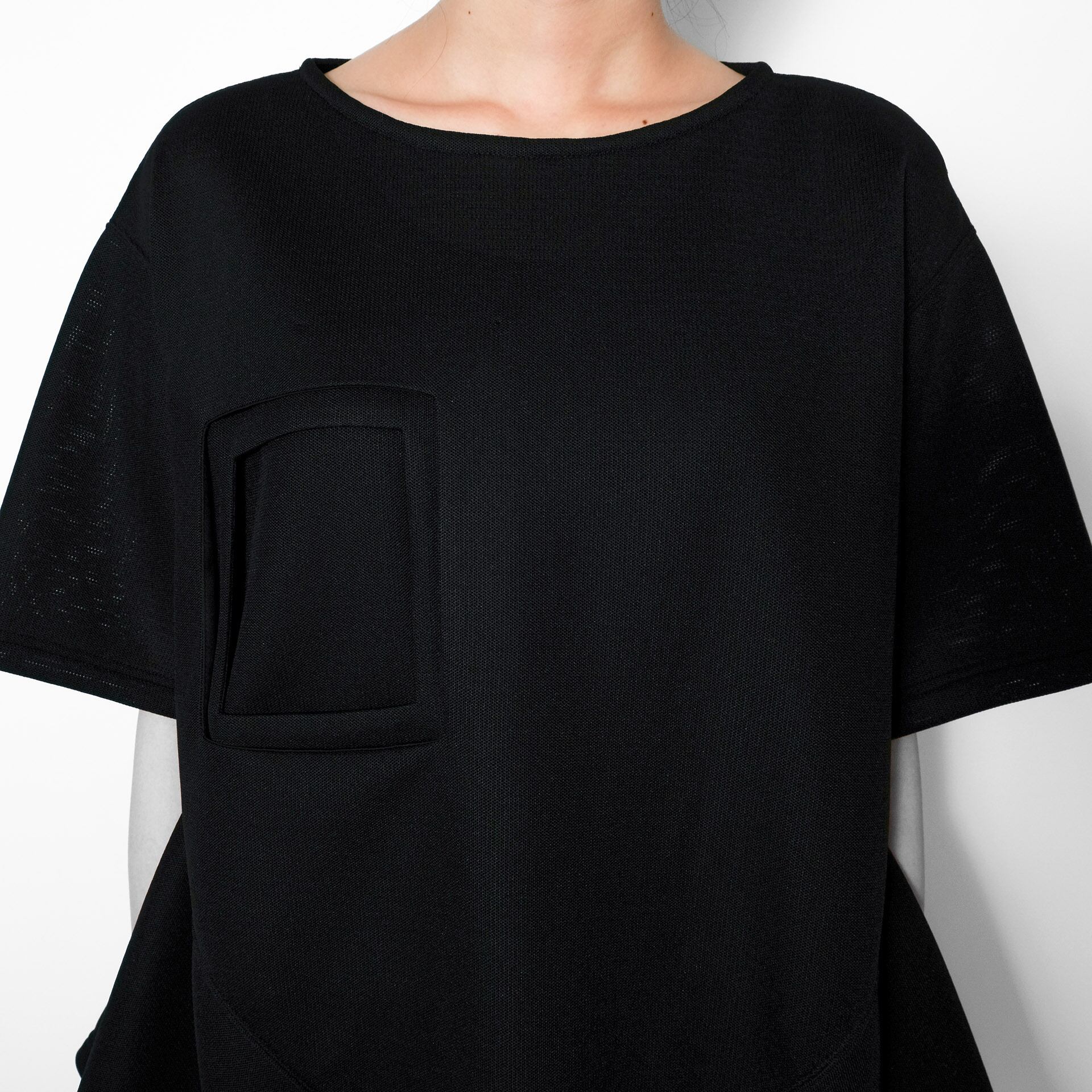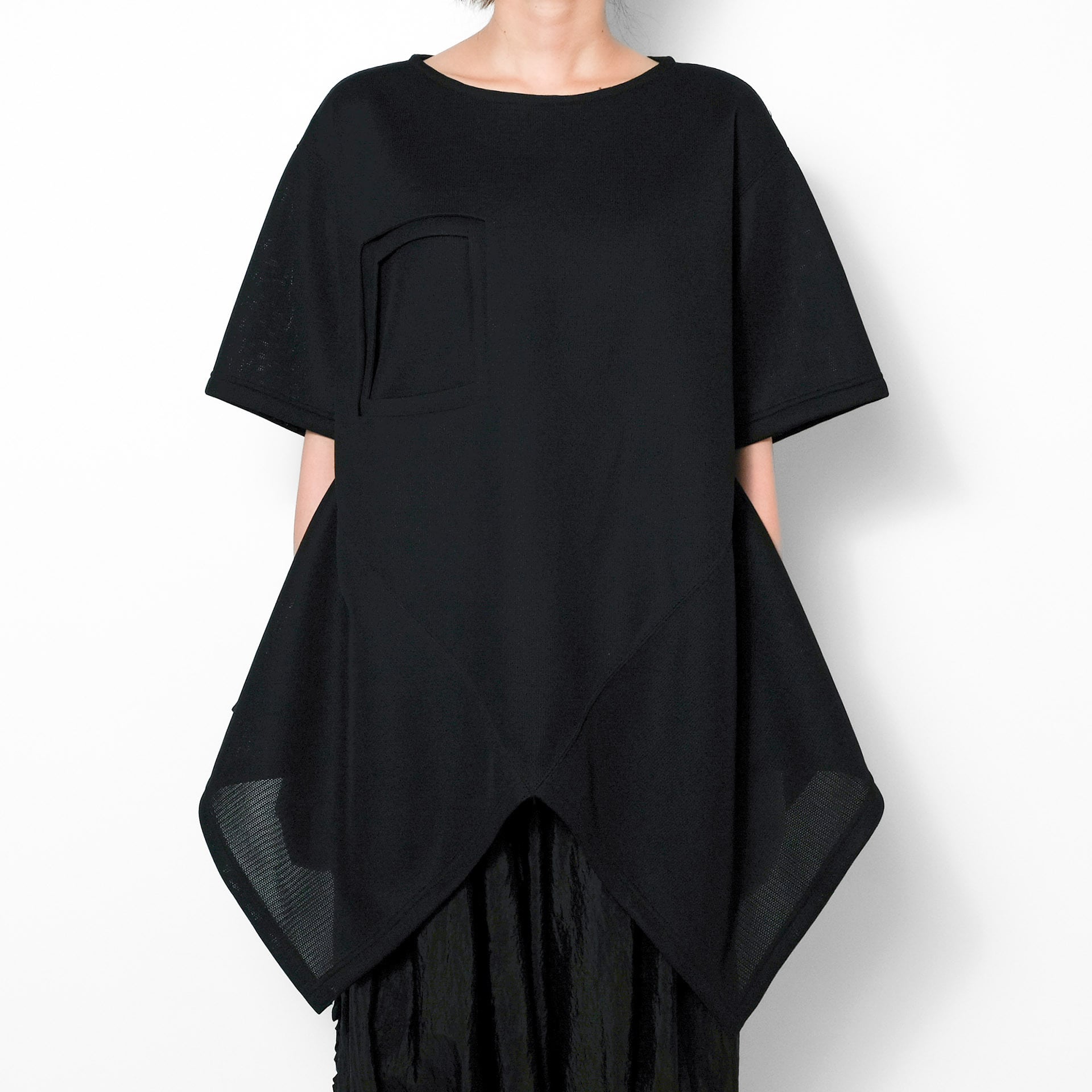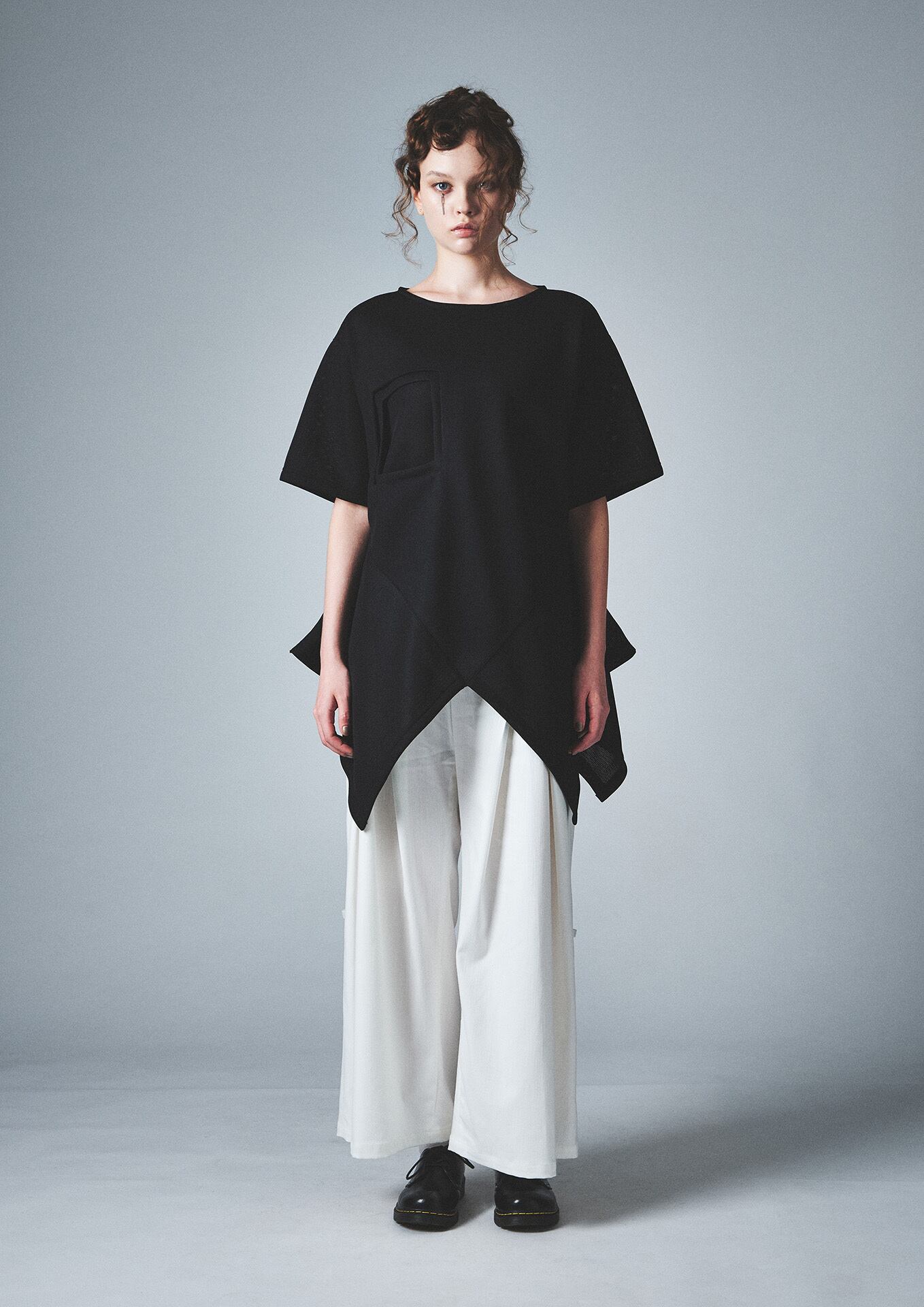 立体的なメッシュ構造を持つダンボールニットで仕立てた、“四角”の造形にこだわったカットソー。