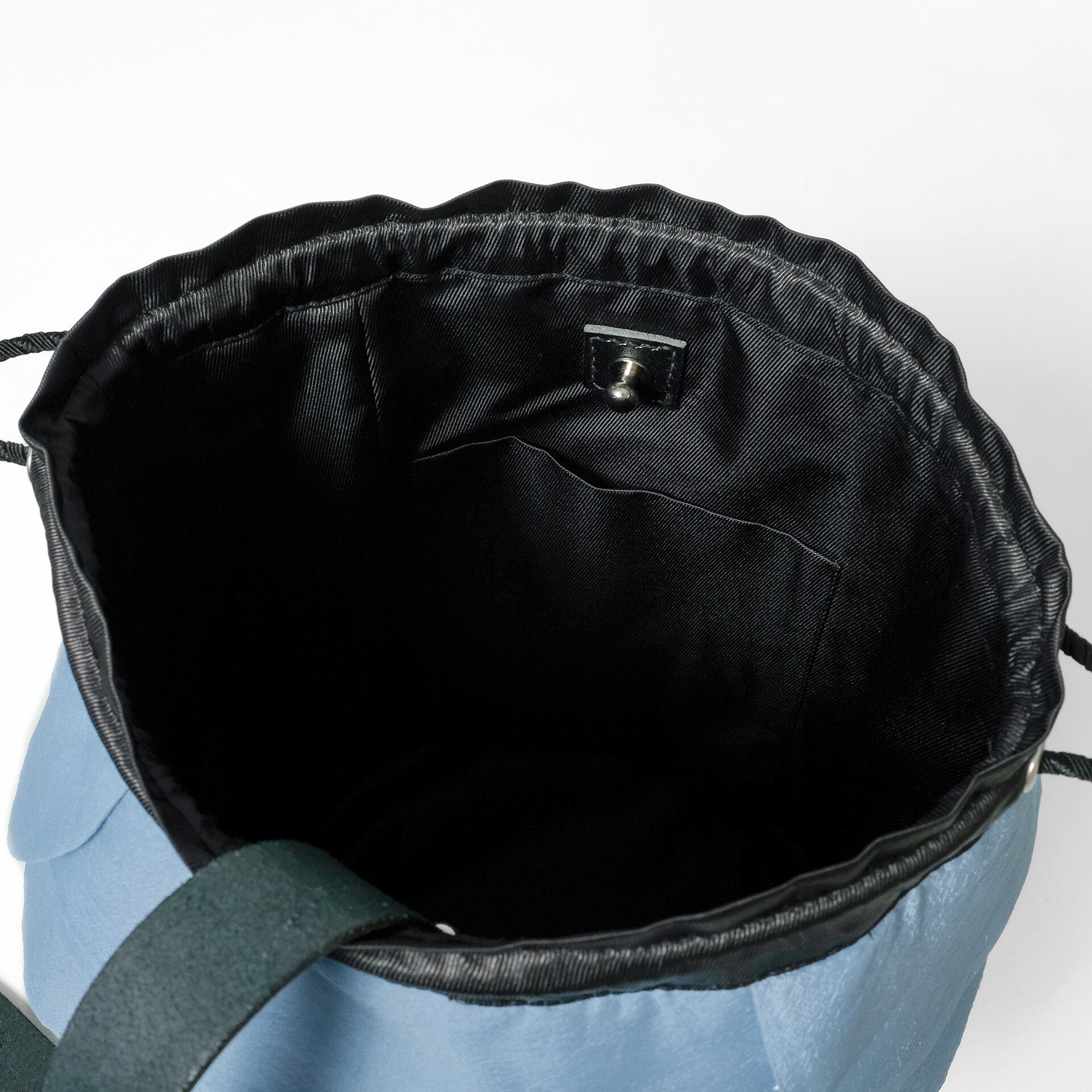 このバッグは、バケットバッグと巾着バッグの2WAY仕様。シーンに応じて使い分けができるため、スタイリングの幅が広がります。シンプルなデザインに加え、持ち手部分にはこだわりのディテールが施されており、使い勝手だけでなく、見た目にも楽しさをプラスしています。