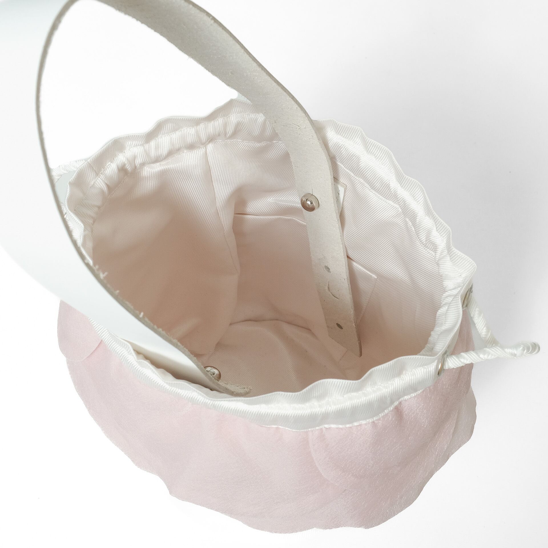 美しいエコレザーとエアリーなオーガンジーを組み合わせた、フラワーポットミニバッグ。