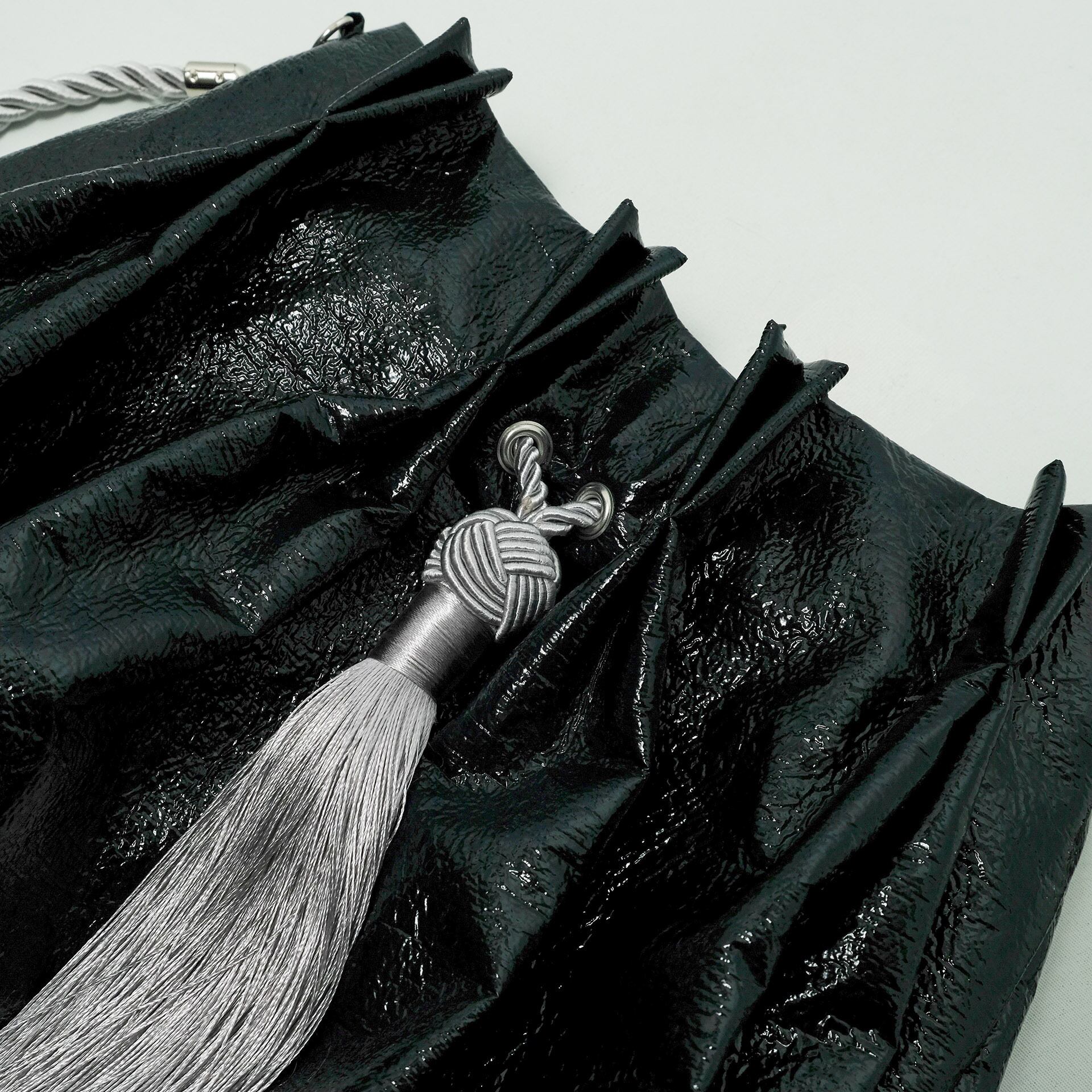 カーテンからインスピレーションを得た、独自のデザインが魅力的なショルダーバッグです。全体に施された特有のタックが、他にはない上品さを演出。タッセルをデザインポイントに採用し、シンプルながらも個性的なスタイルを語ります。