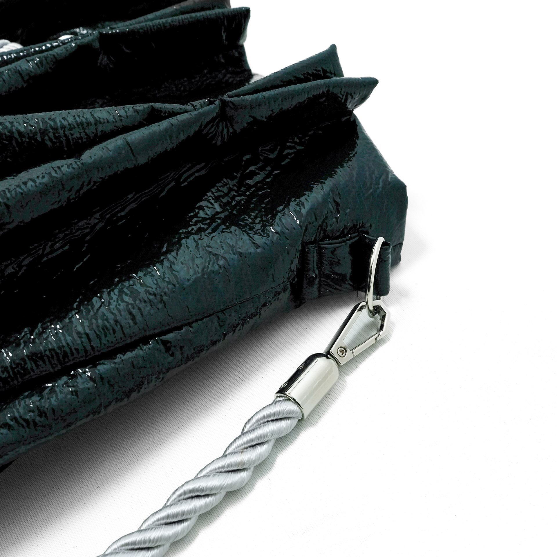 通常のフラットな印象のエナメルレザーとは一線を画す希少性の高い素材です。