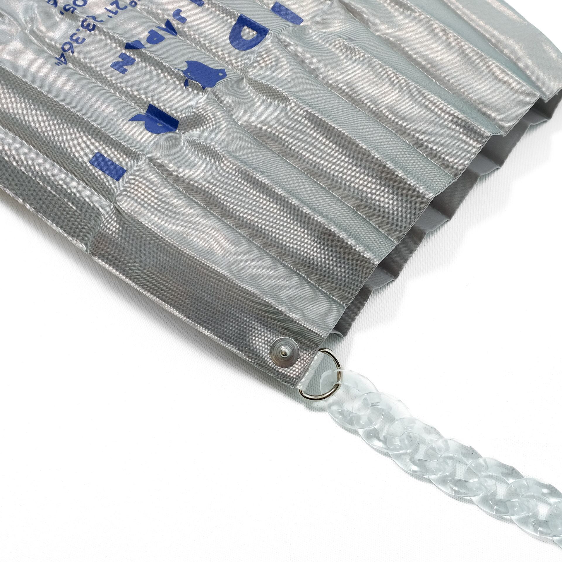バッグ本体のプリーツ形状加工によりワンタッチでの折り畳みが可能になり、デザイン性・利便性ともにワンランク上のポータブルバッグが実現しました。